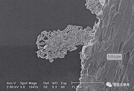 金屬鋰的表面容易長出這種形似樹枝的晶體,并且在電池使用過程中會不斷生長。
