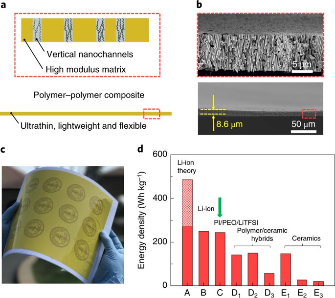 JiayuWan, Jin Xie, Yi Cui et al. Ultrathin, flexible, solid polymer compositeelectrolyte enabled with aligned nanoporous host for lithium batteries. NatureNanotechnology 2019.