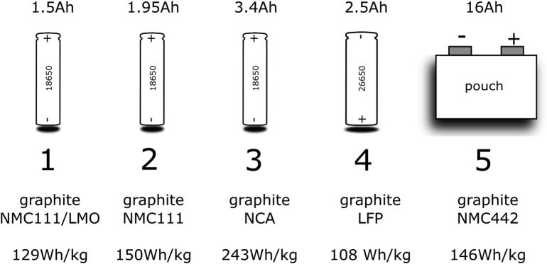 圖3 五種典型的商業(yè)鋰離子電池