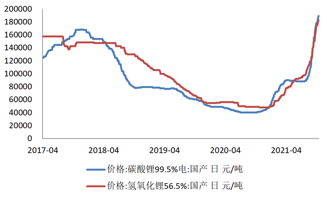 10月假期后,碳酸鋰和氫氧化鋰的價格雙雙突破了18萬元/噸。