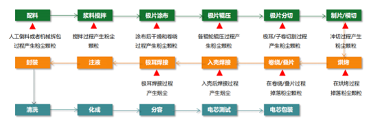 如前文所說,鋰電池生產工藝流程較長,涉及材料種類繁多, 不同工序產生的粉塵類型也多種多樣,主要涉及的粉塵有鈷酸鋰、錳酸鋰、石墨、鎳酸鐵鋰、導電碳黑、鋁箔、鋁粉、銅箔、PP聚丙烯、PE聚丙烯以及焊接工藝產生的焊煙等。