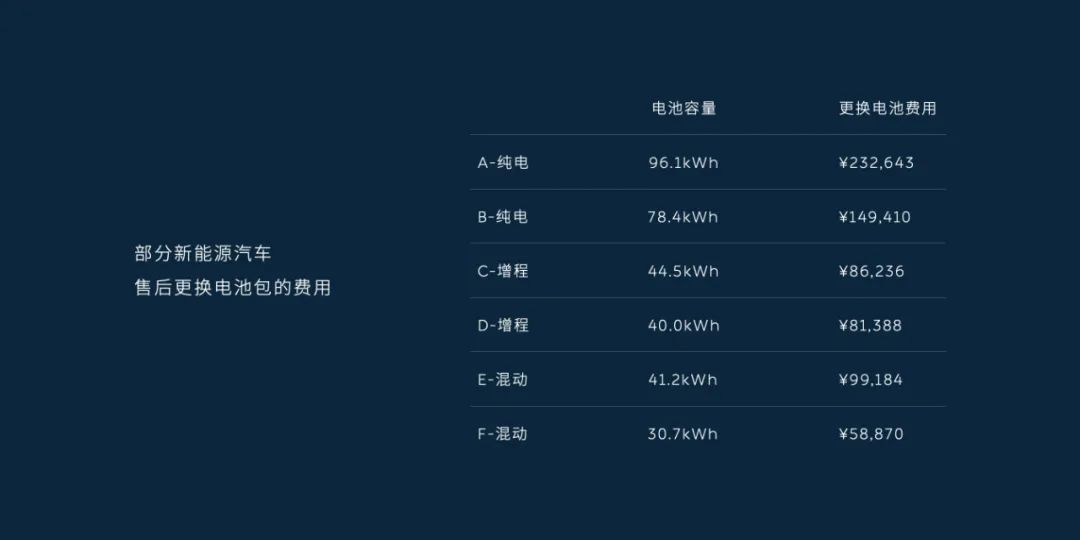 這也是行業性的問題。比如,我了解過的某合資品牌的一款純電車,售價為20.99萬元,但是,換塊電池的話,也要14萬元。