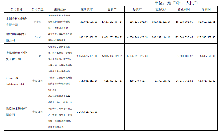 全資孫公司鵬欣國際集團有限公司參與認購澳洲上市公司Clean TeQ Holdings Limited發行的9251.8888萬股的股份,認購單價為每股0.88澳元(AUD),認購金額為8141.662144萬澳元(AUD)。認購完成后,占Clean TeQ Holdings Limited發行后股份總數的16.17%。