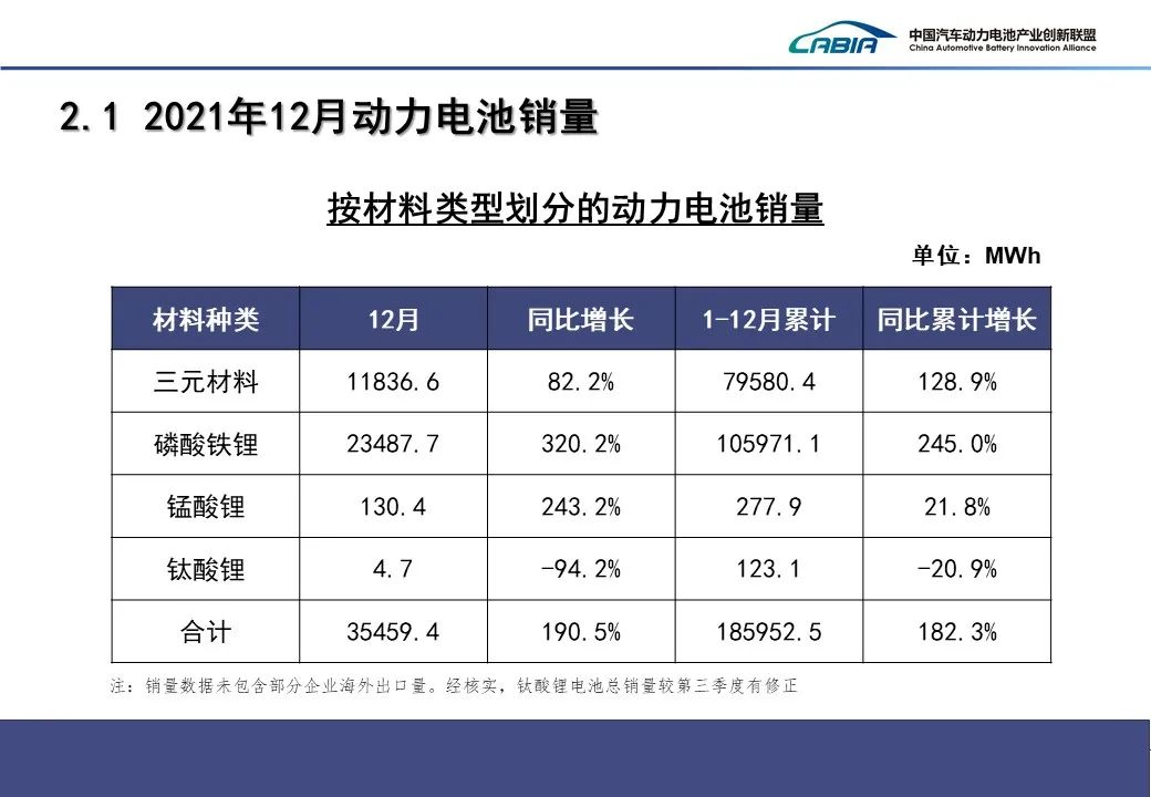 日前,中國汽車動力電池產業創新聯盟發布了2021年12月動力電池月度數據。